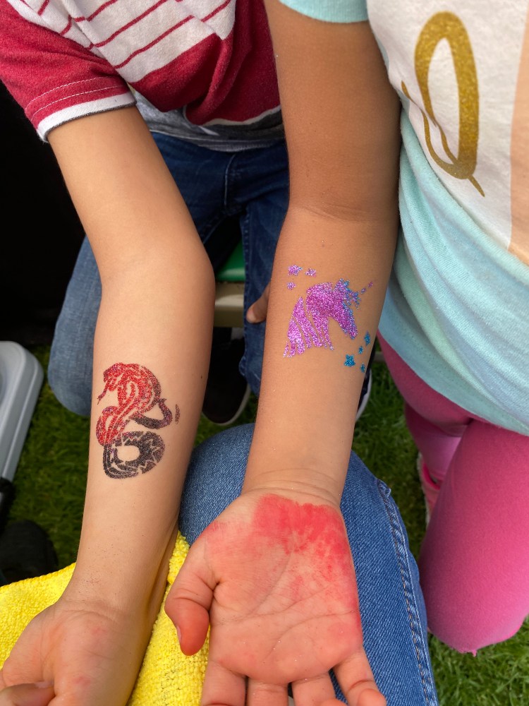 Entertain your guests with beautiful paintings, temporary tattoos, body and cheek art. We offer creative face art with family-friendly designs. We only use safe for skin products that are FDA compliant and can be removed with soap and water. Make your event special by adding a face painter.